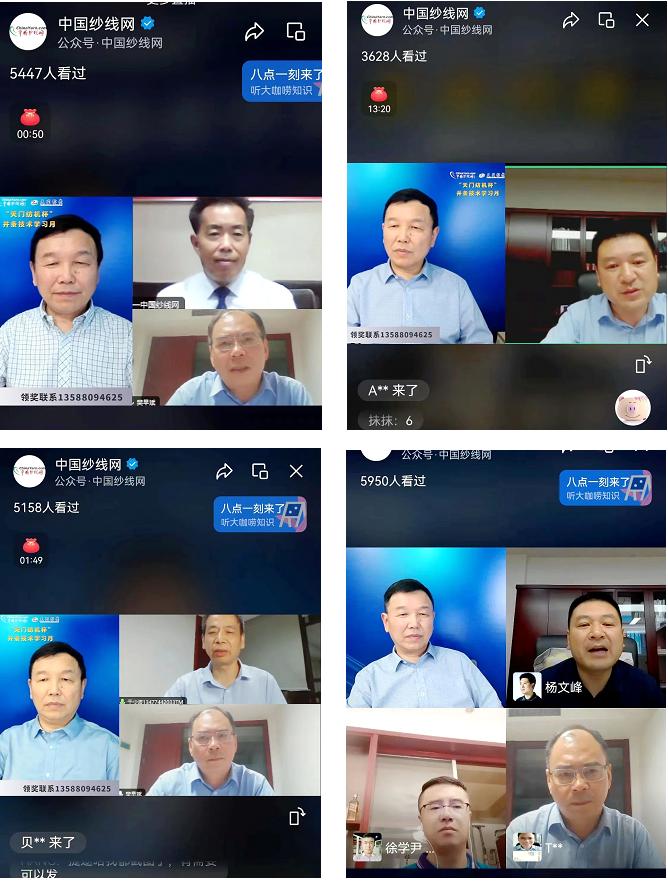 本次活動進(jìn)行了6場直播。其間,天門紡機(jī)副總經(jīng)理楊文峰就紡織裝備的發(fā)展趨勢作了深度剖析,分享了并條機(jī)牽伸形式、傳動方式、換筒方式及自調(diào)勻整等方面的專業(yè)知識;天門紡機(jī)品控總監(jiān)樊早斌、售后服務(wù)中心主任于少波分別就并條機(jī)操作、工藝要求、維護(hù)保養(yǎng)、常見問題排查等方面的知識和經(jīng)驗進(jìn)行了交流。線上學(xué)習(xí)氛圍濃厚,平均每場都有近6千人參加學(xué)習(xí),總計超3萬余人。