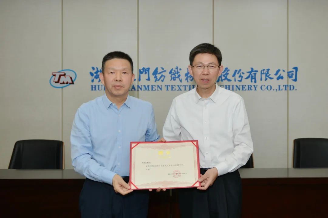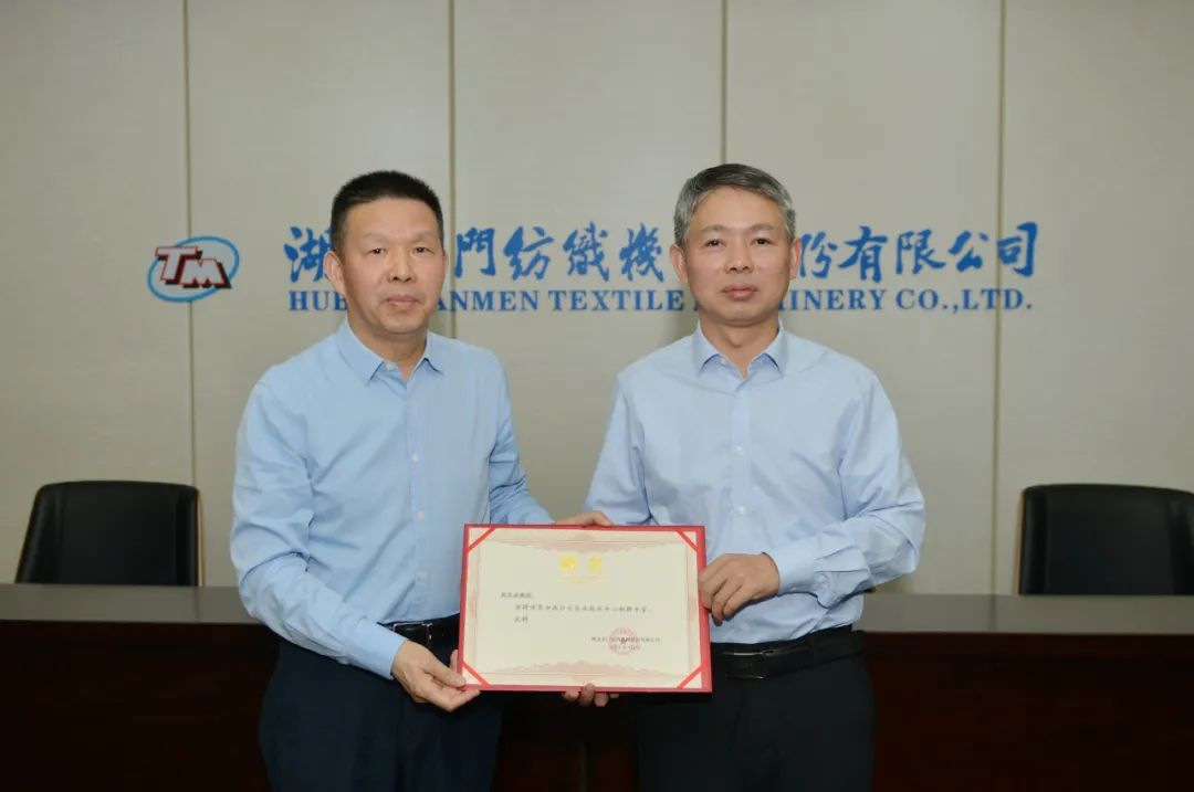 座談會(huì)后,沈董事長代表天門紡機(jī)向單教授等3位老師頒發(fā)了特聘專家證書。
