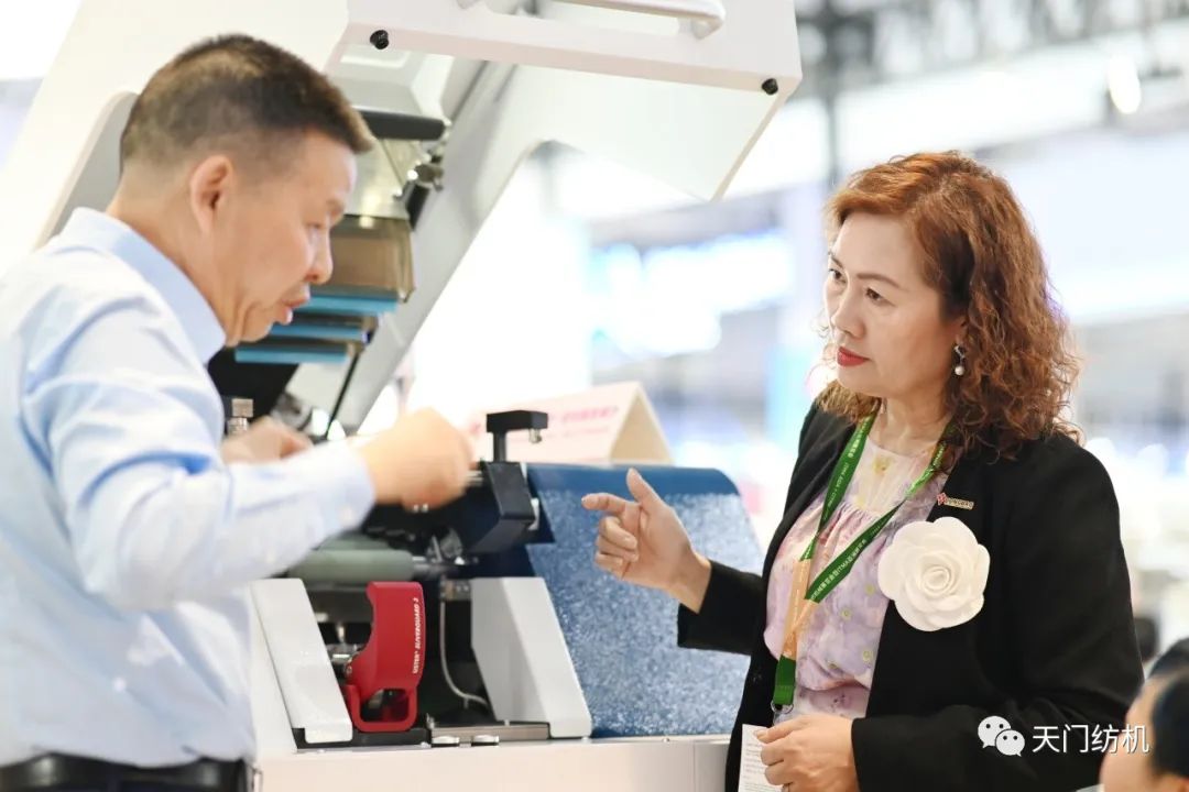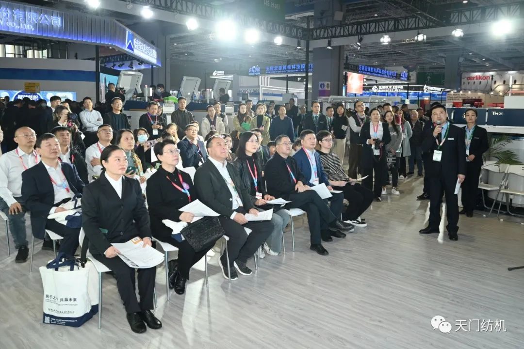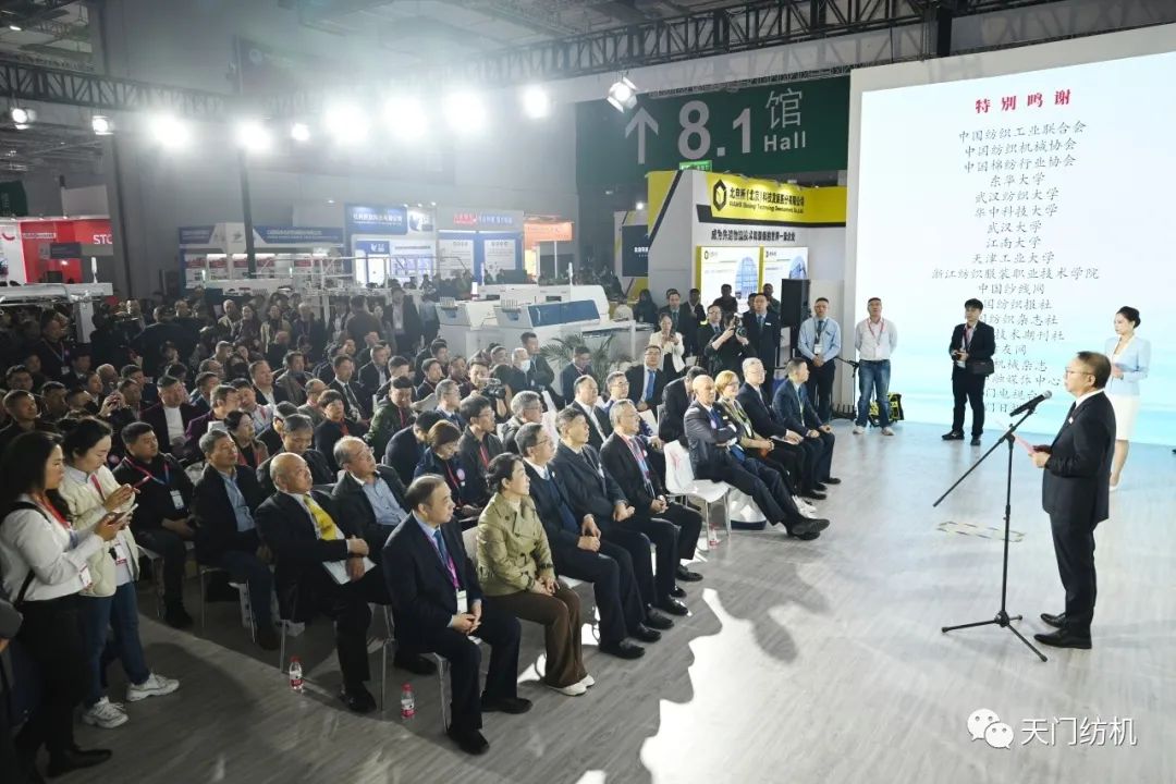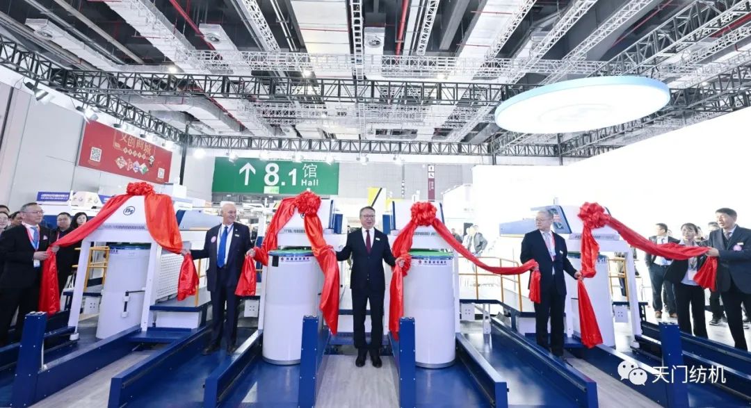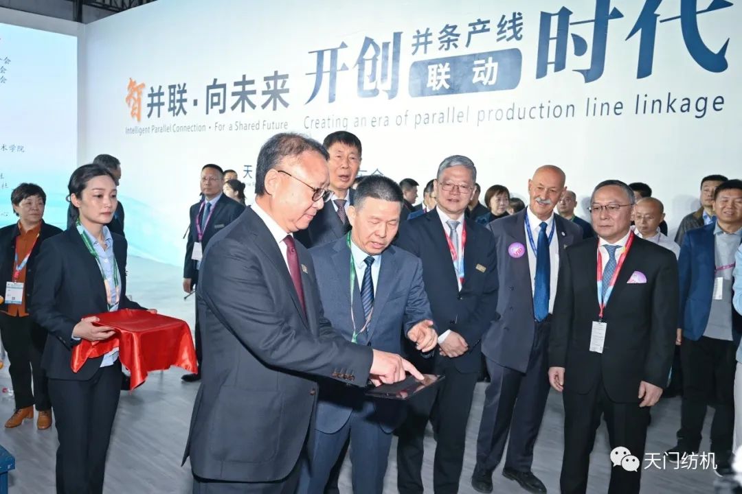 中國(guó)紡織工業(yè)聯(lián)合會(huì)會(huì)長(zhǎng)孫瑞哲,副會(huì)長(zhǎng)夏令敏、徐迎新,老領(lǐng)導(dǎo)張延愷副會(huì)長(zhǎng)和歐洲紡織機(jī)械制造商委員會(huì)主席Mr. Ernesto Maurer等嘉賓共同揭幕,天門(mén)紡機(jī)T2、T3系列新產(chǎn)品正式亮相。