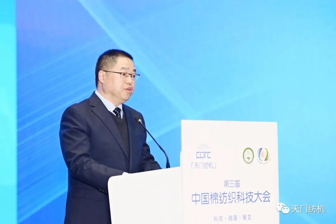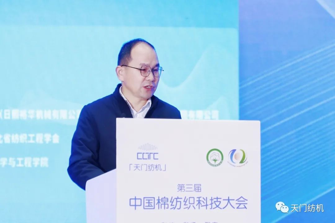 全國棉紡織科技信息中心主任、《棉紡織技術》期刊社社長王楊俊在致辭中談及科技創新及行業科技共同體建設,他表示,一是產業要關注基礎研究,打贏關鍵技術攻堅戰。二是行業要助力科技融通,跑出科技轉化加速度。三是棉紡織企業要聚焦未來變化,開辟產業發展新賽道。