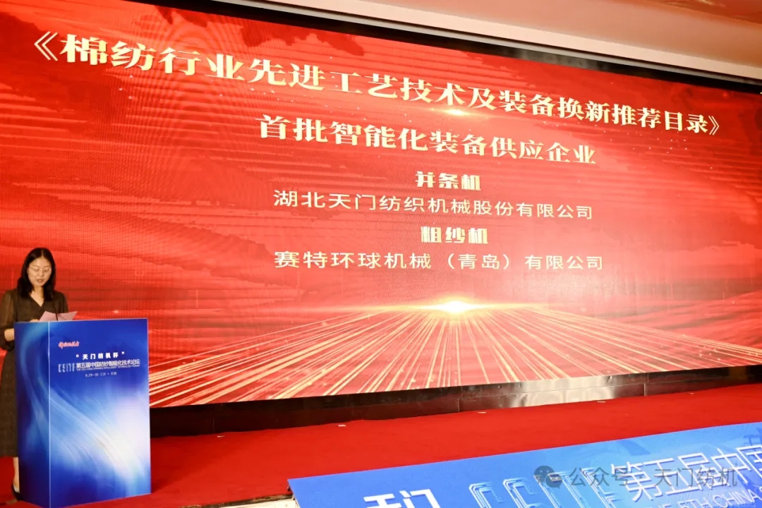 天門紡機系列并條機獲得“棉紡行業先進工藝技術及裝備換新推薦”