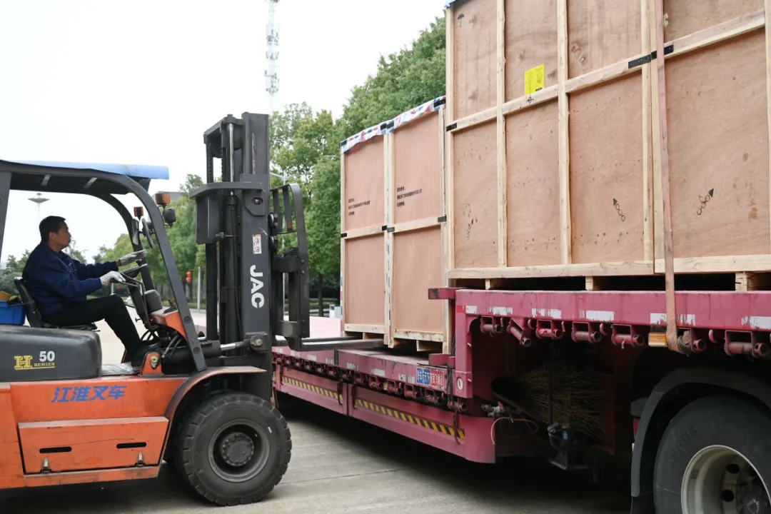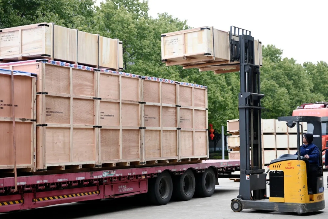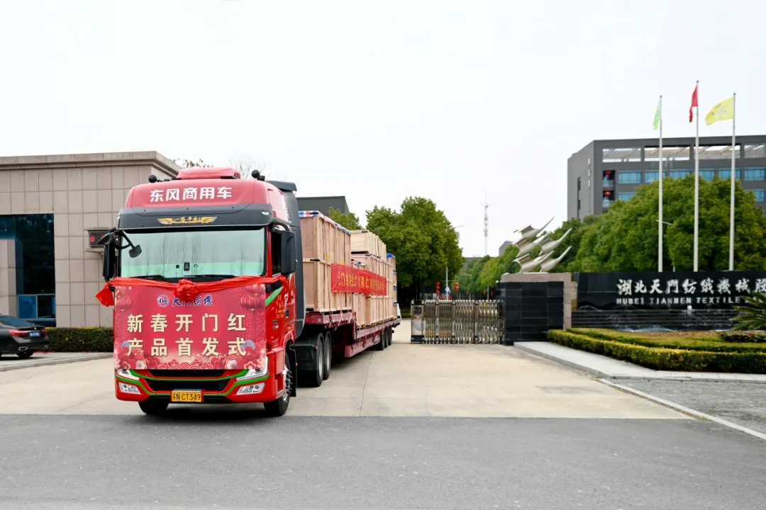 2025年2月5日,大年初八,春寒料峭。當濃厚的年味還在江漢平原持續蔓延的時候,湖北天門紡織機械股份有限公司已經切換到“開掛”模式,生產車間一片忙碌景象,13臺并條機產品披紅掛彩,即將起運到客戶手中。