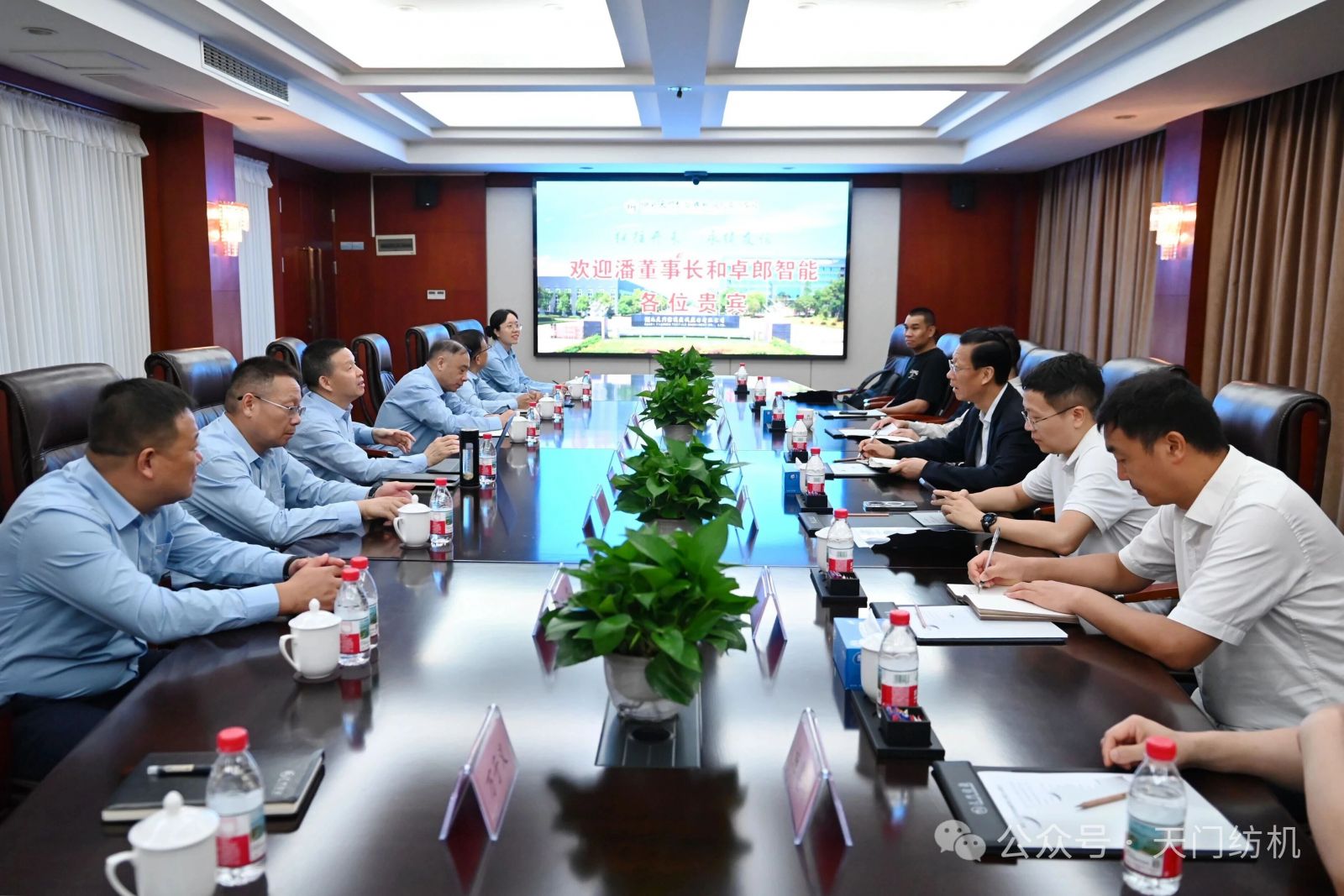 2025年9月27日,卓郎智能技術股份有限公司董事長潘雪平一行7人蒞臨天門紡機參觀交流,公司董事長沈方勇予以熱情接待。雙方圍繞紡織行業(yè)發(fā)展形勢及合作項目等議題進行了深入交流。