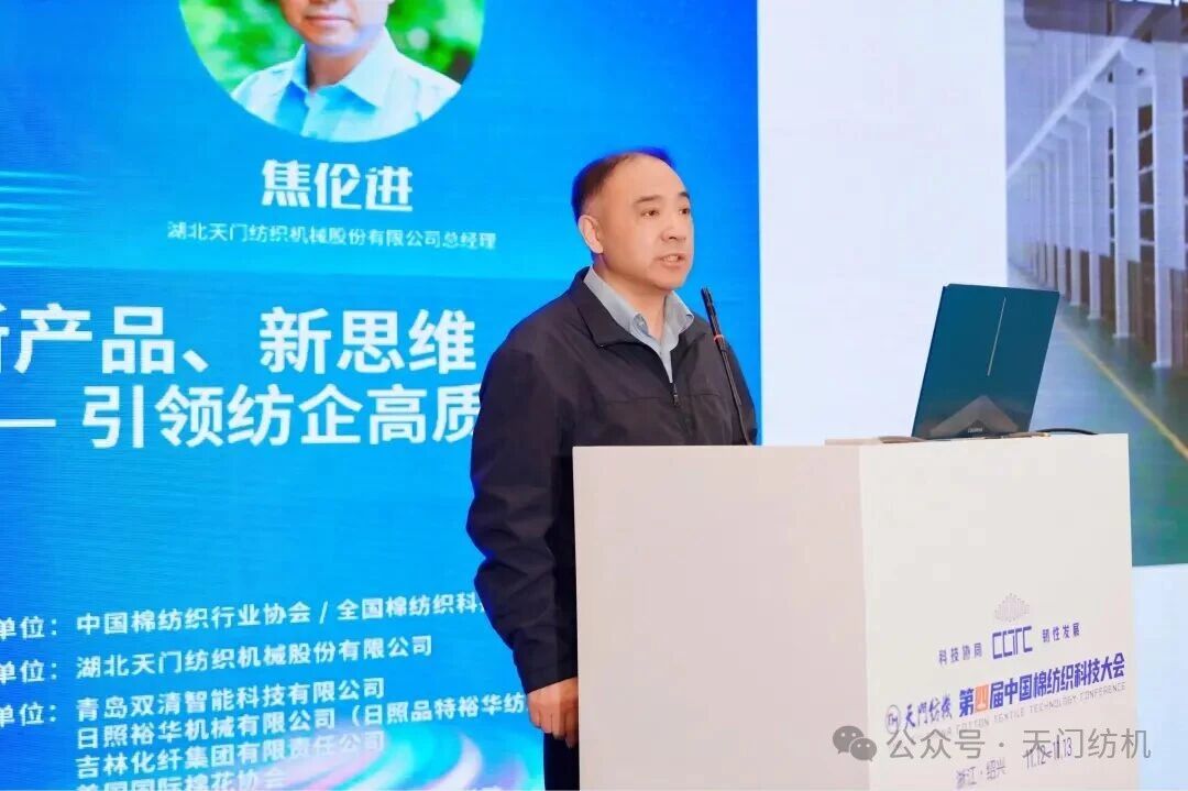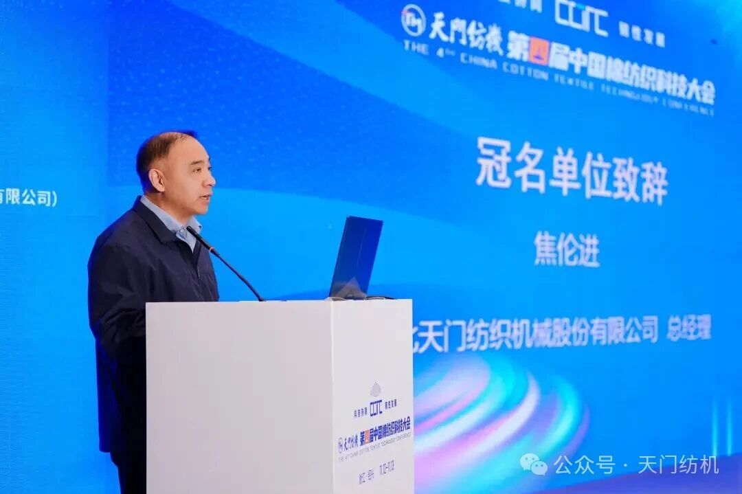 天門紡機(jī)總經(jīng)理焦倫進(jìn)代表冠名單位致辭。他表示,40余年來(lái),天門紡機(jī)秉持“并條做精、企業(yè)做強(qiáng)”初心,深耕并條機(jī)領(lǐng)域,以優(yōu)質(zhì)產(chǎn)品、服務(wù)及品牌引領(lǐng)行業(yè)發(fā)展。其雙眼自調(diào)勻整并條機(jī)已在棉紡企業(yè)廣泛推廣應(yīng)用,顯著提升了紗線質(zhì)量與生產(chǎn)效率,成為紡紗企業(yè)必備裝備;“并條工序全自調(diào)勻整”理念亦獲得客戶認(rèn)可,有效改善紗線和布面質(zhì)量。在技術(shù)創(chuàng)新方面,天門紡機(jī)成果豐碩,TM1系列并條機(jī)已成紡織行業(yè)主力產(chǎn)品,T2系列產(chǎn)品正逐步推向市場(chǎng),搭載智能在線檢測(cè)、一控多軸多臺(tái)及數(shù)據(jù)管理云平臺(tái)技術(shù)的“產(chǎn)線聯(lián)動(dòng)”并條機(jī)引起了業(yè)界廣泛關(guān)注。同時(shí),天門紡機(jī)全力推進(jìn)“智改數(shù)轉(zhuǎn)”,“智慧工廠”項(xiàng)目正在如火如荼地建設(shè)之中。他指出,天門紡機(jī)始終關(guān)注行業(yè)的最新動(dòng)態(tài)和前沿技術(shù),希望與業(yè)界加強(qiáng)溝通與合作,攜手發(fā)展。