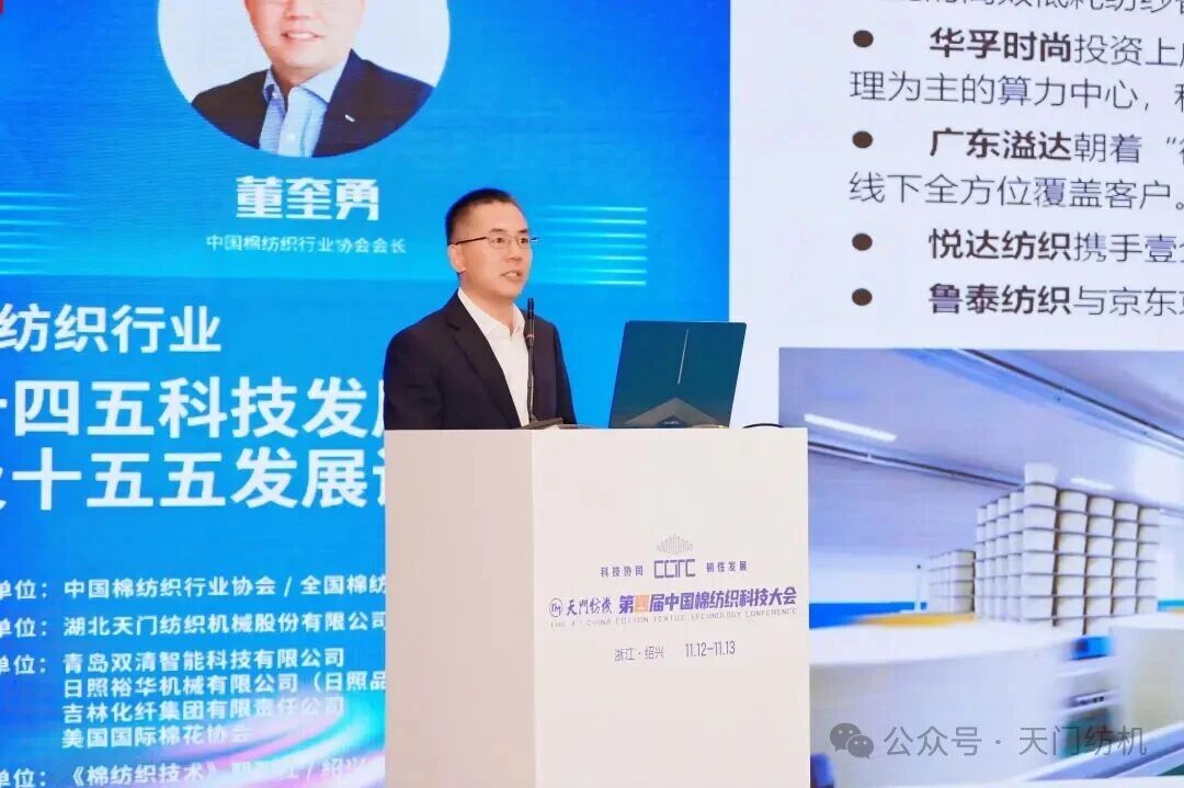 中國(guó)棉紡織行業(yè)協(xié)會(huì)會(huì)長(zhǎng)董奎勇作了題為《棉紡織行業(yè)“十四五”科技發(fā)展成就及“十五五”發(fā)展設(shè)想》的主題報(bào)告,深入剖析了行業(yè)經(jīng)濟(jì)運(yùn)行現(xiàn)狀、發(fā)展環(huán)境變遷,以及當(dāng)前科技創(chuàng)新所面臨的挑戰(zhàn)與機(jī)遇。